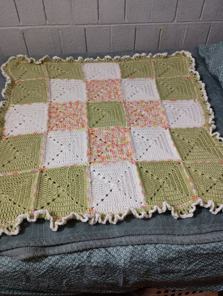 I finished this today, called the Bernat Softee Baby Double Diamond Blanket
