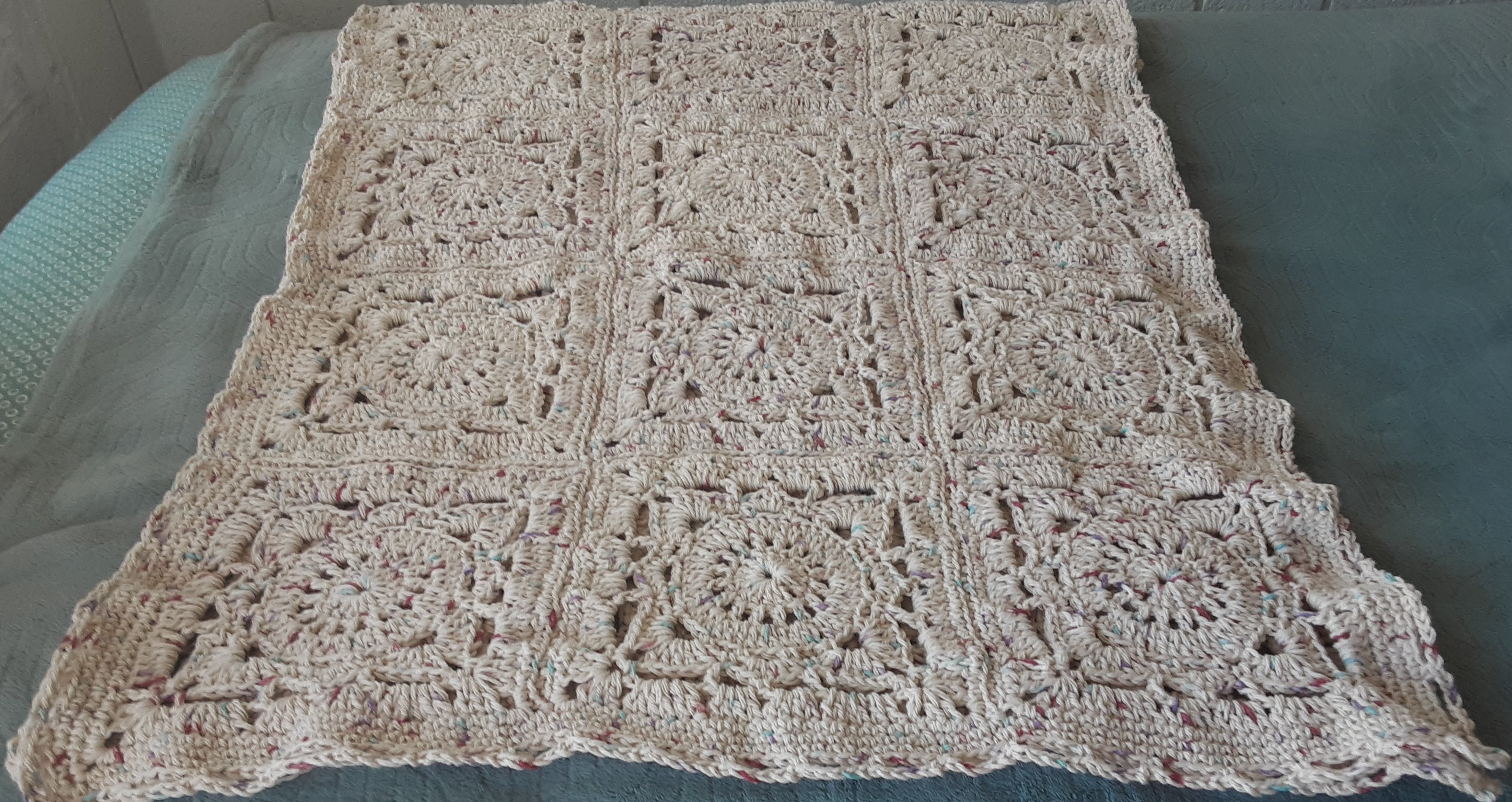 I crocheted this with Lily’s Peaches & Cream yarn in the colorway Panorama. It is pretty big, 26 x 66 inches. Therefore, it is a very big heavy shawl made with 100% cotton yarn. I see the big picture, the panorama, everyday and especially today. This was a big Universe Parallel day for me.
