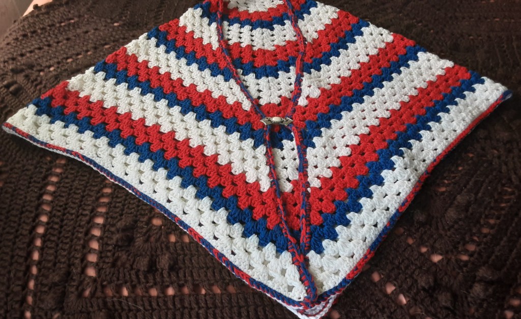 I need to add a beautiful crocheted border to my Patriotic Shawl. I must have run out of yarn at the time I made this one. Borders are very important whether they are on my shawls, my blankets, or around my country. We really do have a distinct border with Mexico. We are not conjoined with that country. Borders are becoming very important right now.